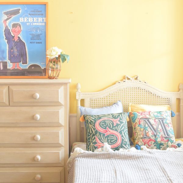 寝不足を解消する、挿し色に合わせてコーディネートした寝室