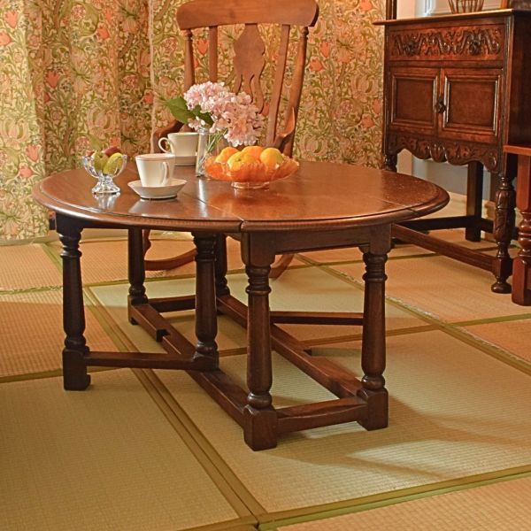コタツ代わりに大きな円卓を置いた英国スタイルの和室