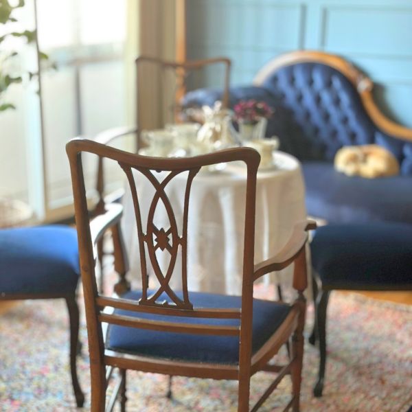 昨日の夜からなんだか喉が痛い気がする・・・と思って、朝起きたら・・・意外に元気(笑)そうは言っても、なんとなく風邪をひいている気がして、ムリをしないようにゆったり過ごすサロンをコーディネートしてみました。 めっちゃくちゃステキな片袖タイプのセティと同じブルー色の座面で統一した透かし彫りが美しいサロンチェアで組み合わせたサロンは、本当に美しい・・・ せっかくなので、フランスのアンティークシャンデリアを吊るしてさらにエレガントさをプラス。ここにいるだけで元気になりそうです。