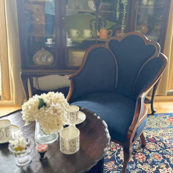 ナーシングチェアに座って伊万里とお茶を楽しむサロン
