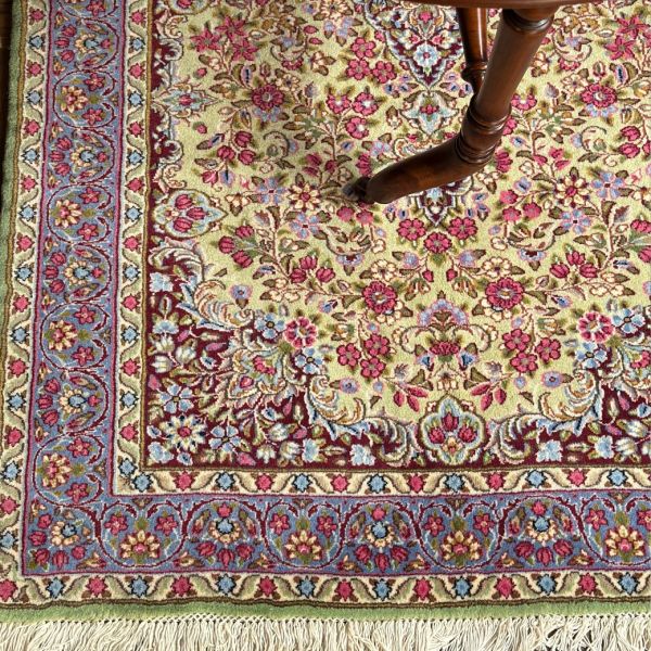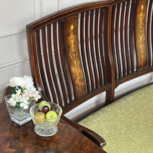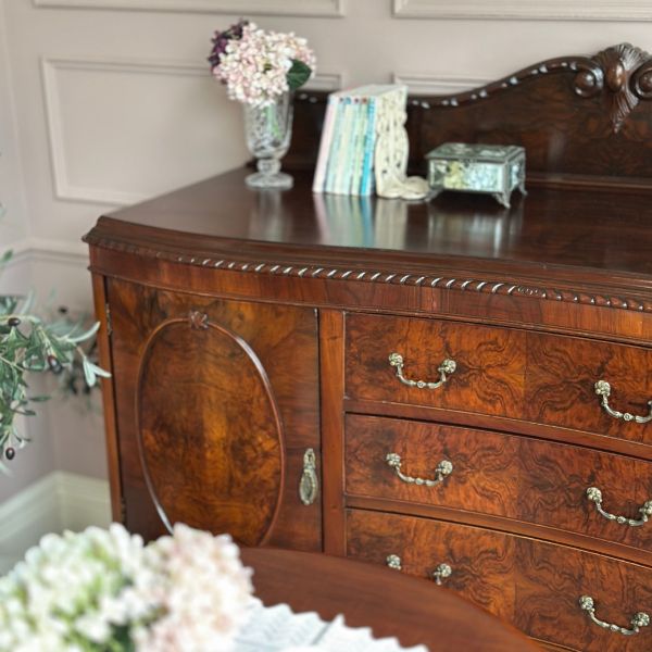 マホガニーのセティの横に、めずらしいコーナー用の伸長式のサイドテーブルをセッティングしたら、めっちゃいい感じにピタッとおさまって、いろんなものが乗せれて便利!