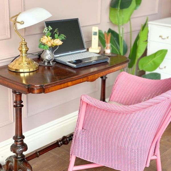 茶色とグリーンで引き締めたナチュラルな仕事部屋