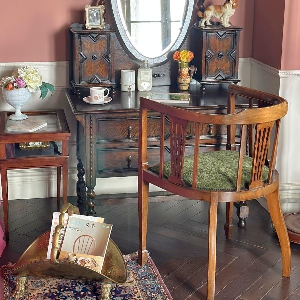 主役は全身が見えちゃうオーバル型の鏡がついたドレッサー!この形って、昔ながらのドレッサーなんだけれど、英国のアンティークだと超おしゃれ☆