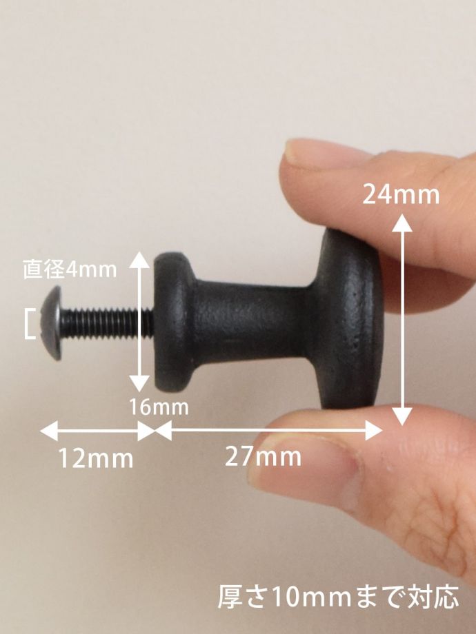 【ビス】長さ1.2cm×径4mm 【ビス対応厚み】約1cm |