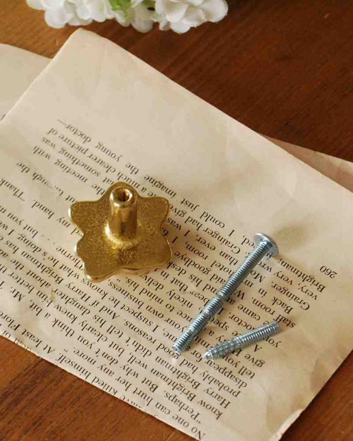 小さなバラがパッと咲いたデザインがなんともゴージャスな雰囲気の真鍮製の取っ手が到着です。