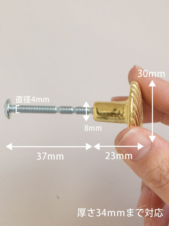 【ビス】 段付きボルト:長さ3.7cm×径4mm 【ビス対応厚み】約3.4cm ハンガーボルト:長さ1.6cm×径4mm 【ビス対応厚み】約1.6cm |