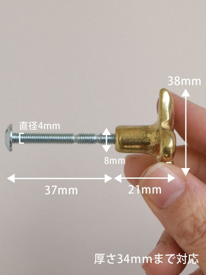 【ビス】 段付きボルト:長さ3.7cm×径4mm 【ビス対応厚み】約3.4cm ハンガーボルト:長さ1.6cm×径4mm 【ビス対応厚み】約1.6cm 幅3.0×奥行3.8×高さ2.0cm |