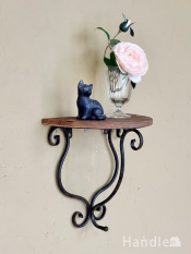 - くるんと巻いた曲線ラインの壁掛け棚、アンティーク調のウォールシェルフ (n22-309)
