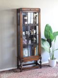 アールデコデザインのおしゃれなショーケース、マホガニー材のアンティークガラスキャビネット