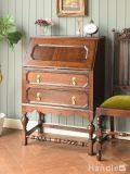 英国アンティークの3段引き出し付きの収納デスク、浮き彫りがカッコいいライティングビューロー