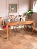 ダイヤ型の模様が美しいアンティークの伸長式テーブル、フランスから届いた猫足のドローリーフテーブル