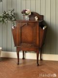 英国アンティークの収納付き家具、彫が美しいおしゃれなサイドテーブル