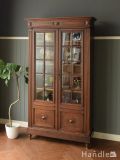 フランスアンティークの美しいガラスキャビネット、こげ茶色のおしゃれなアンティーク食器棚