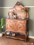 ハートの形の彫りが入ったアンティーク家具、華やかな雰囲気が漂うフレンチカップボード