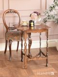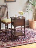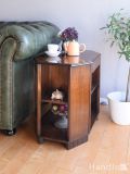 収納も出来るおしゃれなアンティークのテーブル、イギリスから届いたルネットの彫りが入ったサイドテーブル