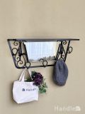 フランスアンティークのフックボード、アイアンのミラー付き壁付けウォールフック