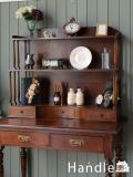 英国アンティークのデスクトップシェルフ、マホガニー材で出来た引き出し付きのオープンシェルフ