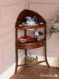 マホガニー材のアンティークコーナーキャビネット、英国のおしゃれな飾り棚ホワットノット