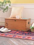 コンパクトサイズのアンティークの収納ボックス、オールドパイン材のおしゃれなブランケットボックス