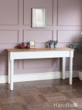 英国アンティークのおしゃれなデスク、丸い取っ手が可愛いオールドパイン材のコンソール