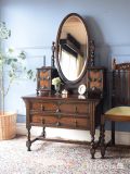 オーバル型のミラーがついたおしゃれなドレッサー、ツイストが美しい英国アンティークのドレッシングチェスト