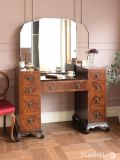ウォールナット材の珠杢が美しいドレッサー、英国アンティークのおしゃれな三面鏡の鏡台