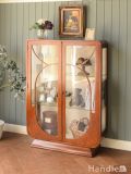 アールデコスタイルのおしゃれなアンティーク飾り棚、ステンドグラス扉がカッコいいショーケース