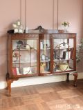イギリスから届いたアンティークガラスの飾り棚、ウォールナット材のショーケース