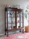 シノワズリスタイルのおしゃれなショーケース、英国アンティークガラスのキャビネット