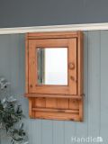 ミラーとタオルバーが付いた可愛い壁付け収納家具、パイン材のアンティークのウォールキャビネット