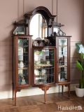 キラキラ輝く華やかなアンティーク家具、ウォールナット材のパーラーキャビネット