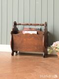 英国アンティークのおしゃれなマガジンラック、持ち手がついた移動ラクラクなオーク材の雑誌収納