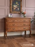 めずらしいオーク材のアンティークチェスト、イギリスから届いたお花の彫りが入った3段チェスト