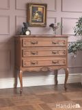 フランスから届いた美しいアンティーク家具、エレガントな猫足のリビング3段チェスト