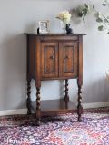 ツイスト脚とビーディングの装飾が美しい、英国アンティークのカッコいいキャビネット