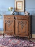 フランスから届いたアンティークのキャビネット、彫が美しい猫脚のフレンチサイドボード