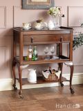 天板がガラスになったおしゃれな英国アンティーク、ワインボトルが収納できる実用的なトローリーワゴン