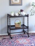 ジャコビアン様式の美しいアンティーク家具、ツイストの支柱がキレイなトローリーワゴン