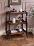 マホガニー材のおしゃれなアンティークワゴン、英国から届いたトレイ付きのトロリーワゴン