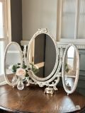 大きなリボンが可愛いアンティークのミラー、フランスから届いた白い三面鏡