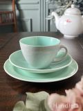 プール・ポタリーのTwintone(Ice Green&Seagull)、英国アンティークのカップ&ソーサートリオ
