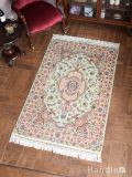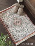 アクセントカラーにピンク色が入った玄関マット、ナインの最高級白いペルシャ絨毯(6La)