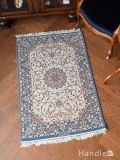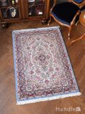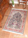 シルクで手結びされた玄関サイズの美しい絨毯、華やかな模様のクムのビンテージマット
