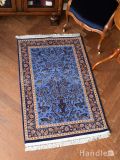 イスファハーンのメダリオンが美しい絨毯、シルクが入った青いペルシャ絨毯