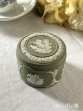 セージグリーン色のジャスパーウェア、アンティークウェッジウッドのフタ付き小物入れ