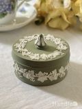 セージグリーン色のジャスパーウェア、英国ウェッジウッドのアンティークボックス