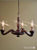 フランスから届いたおしゃれな照明、5灯タイプの木製シャンデリア(5灯)(E17シャンデリア球付)