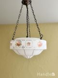 イギリスから届いたアンティークガラスのシェード、美しいお花が描かれたペンダントライト(コード・シャンデリア電球・ギャラリーA付き)