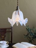 すずらんのお花の形のガラスシェードのペンダントライト(ギャラリー付きコード・シャンデリア電球)