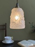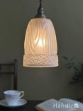 ミルク色のアンティークガラスの照明器具、リース模様の型押しが可愛いペンダントライト